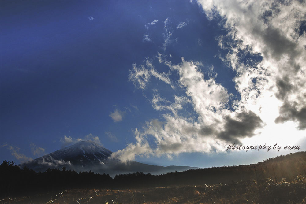 富士山をバックに