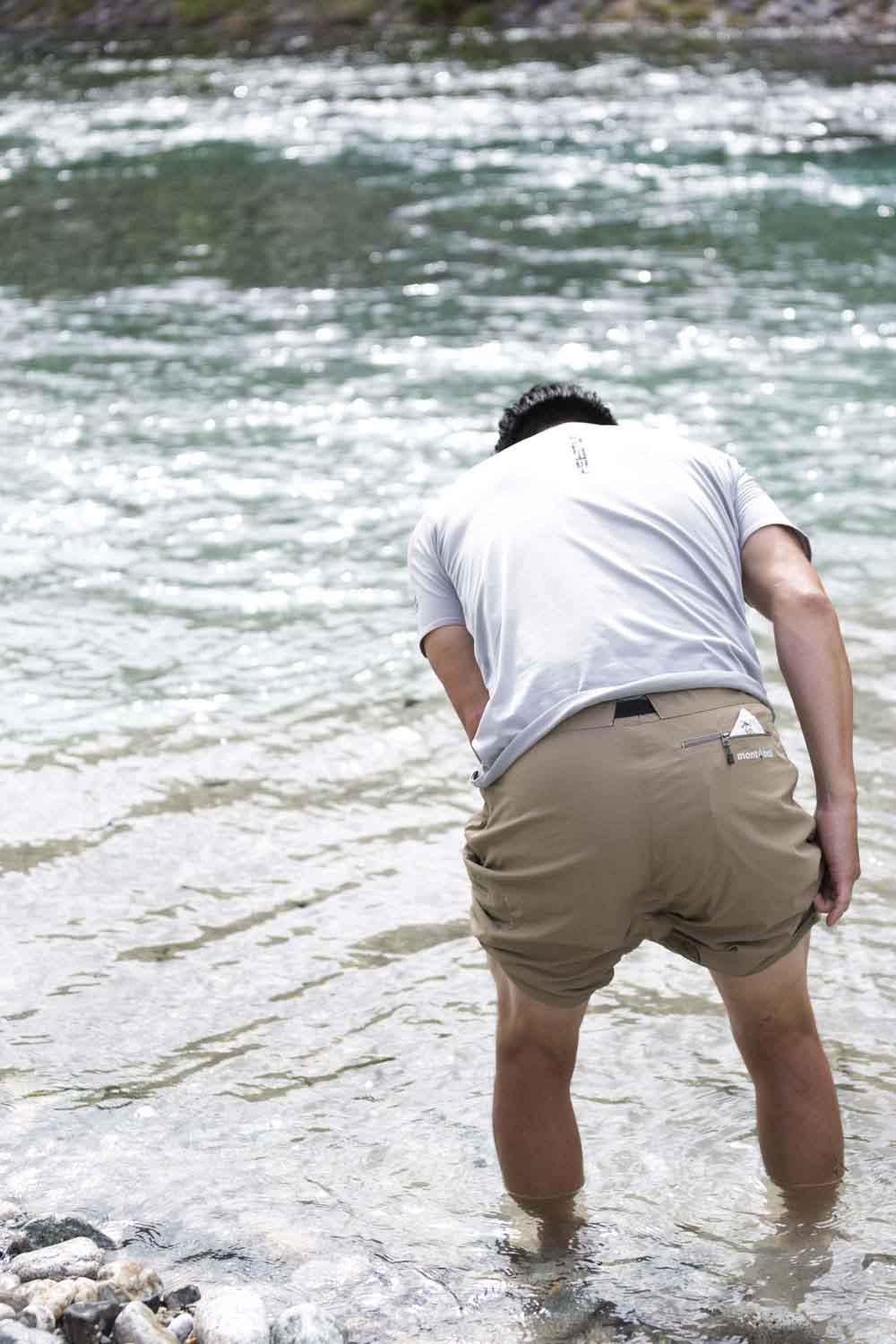 川の水につけてクーリング