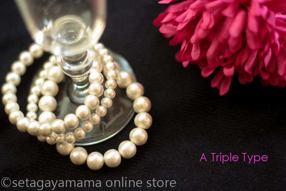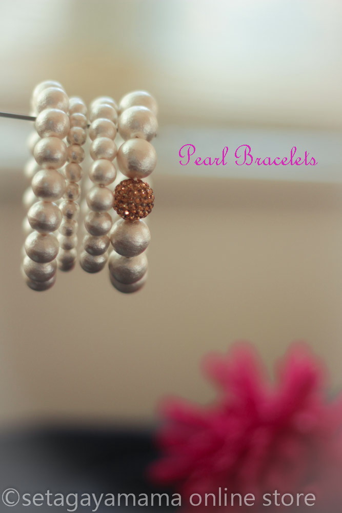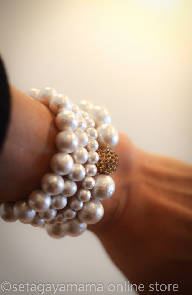 コットンパールの重ねづけブレスレットは華やか カジュアルの時こそ着けてほしいな