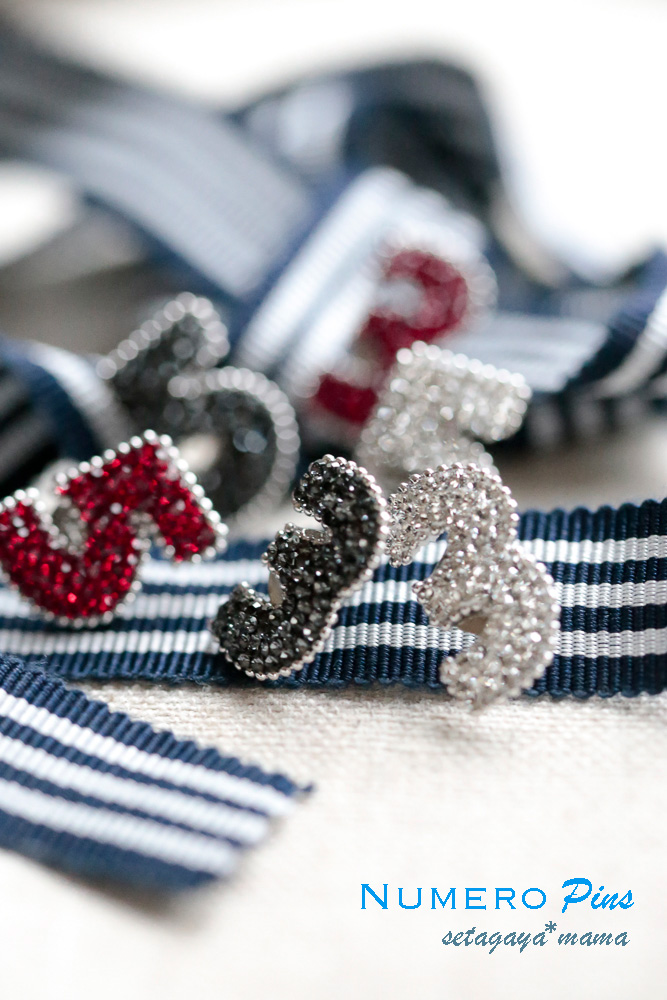 スーツにキラリと スワロフスキーNumero Pins 数字のピンバッチ @ラペルラ
