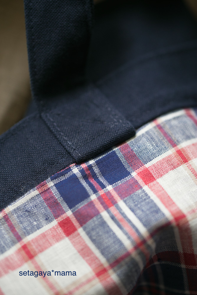マドラスチェックがかわいい ハンドメイド 濃紺のお教室・幼稚園・子供用のレッスンバッグ