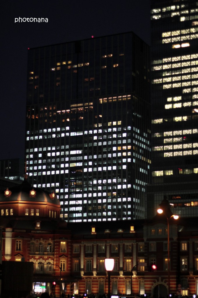 ライトアップされた東京駅の駅舎 プロジェクションマッピング観たかったな・・・