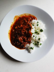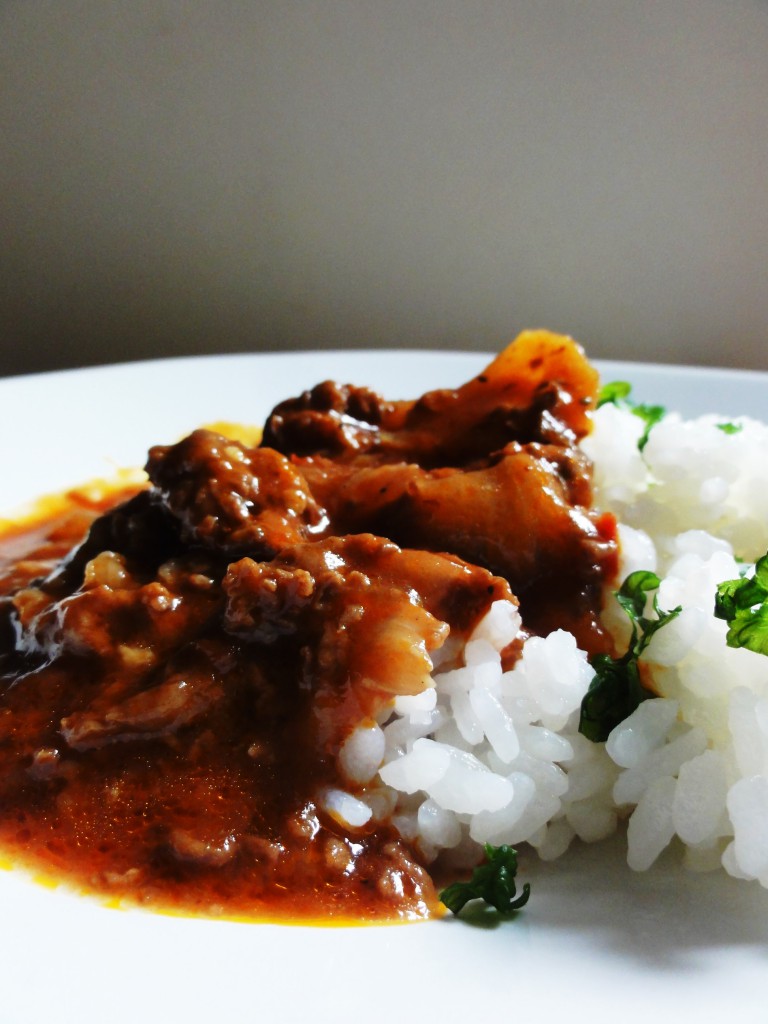 今夜は朝作っておいたハッシュドビーフ